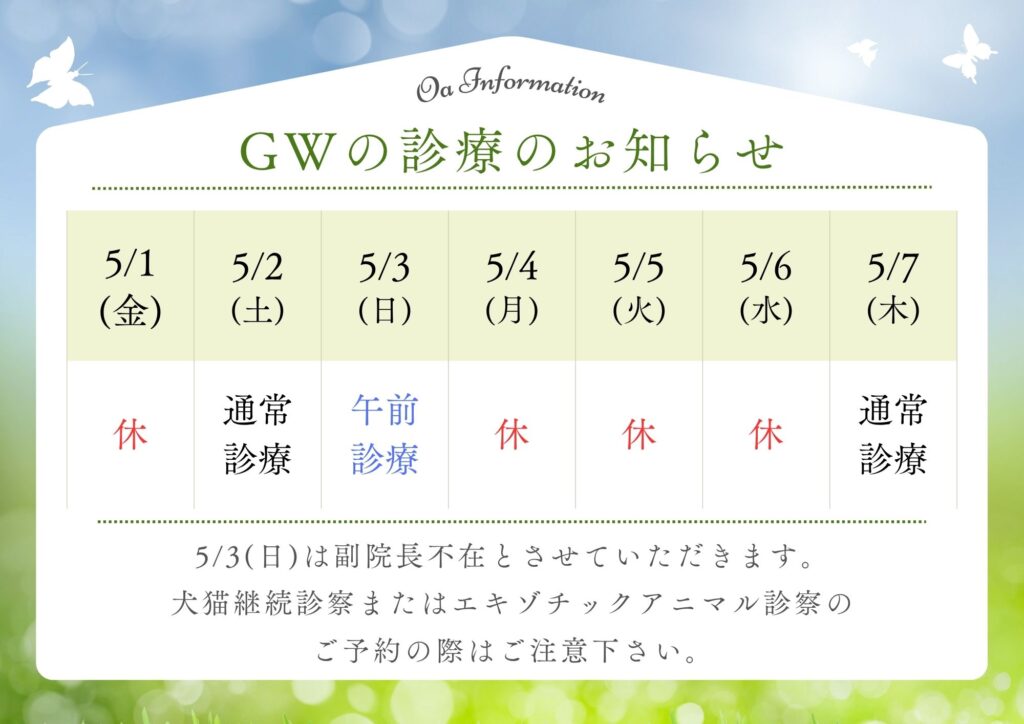※副院長の診察の最終受付は17:30となっております。犬猫継続診察またはエキゾチックアニマル診察のご予約の際はご注意下さい。