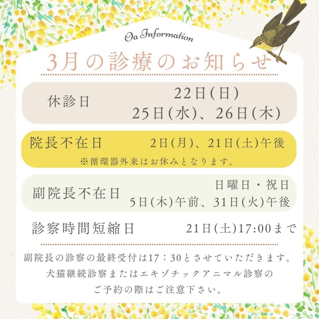 循環器外来は院長、エキゾチックアニマル外来は副院長の担当となります。