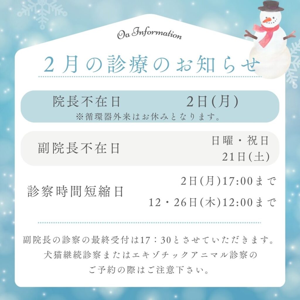 循環器外来は院長、エキゾチックアニマル外来は副院長の担当となります。